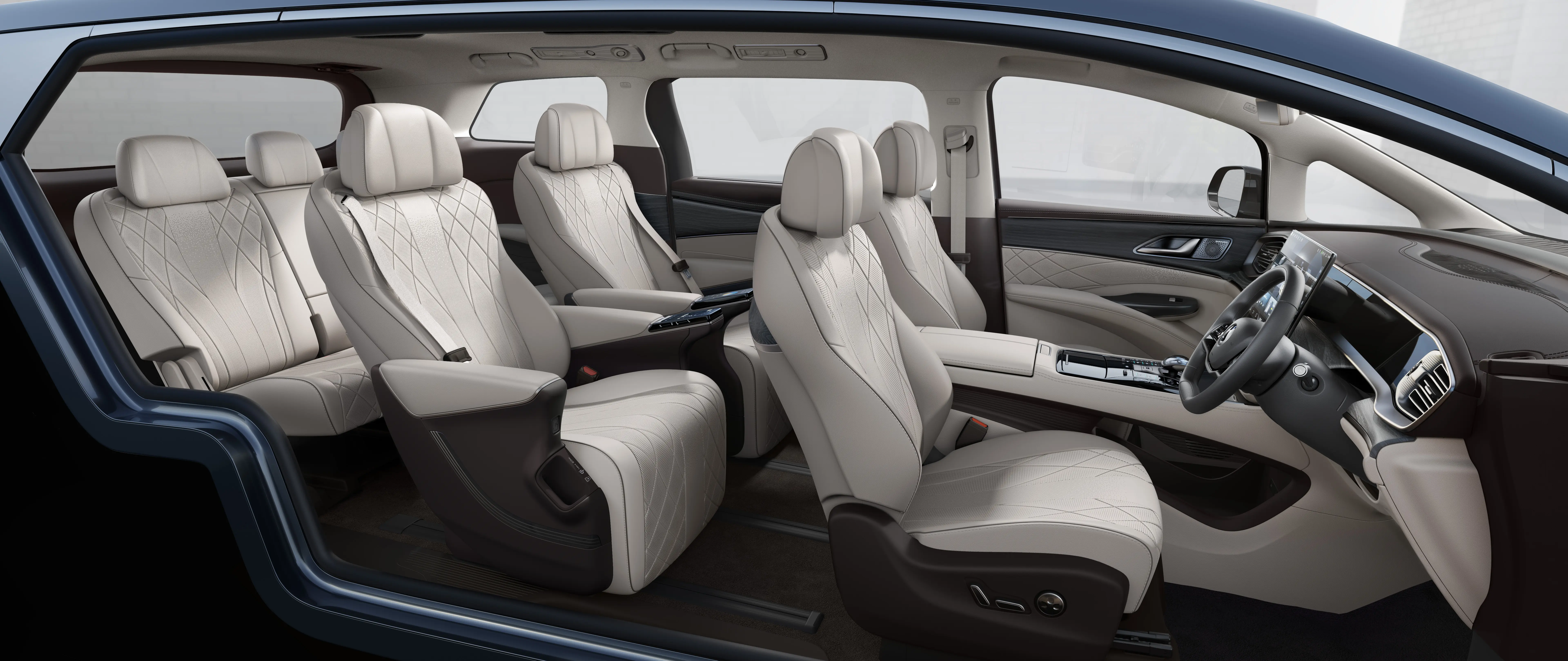 The width of the third-row corridor platform reaches 170mm, with generous legroom up to 1040mm. Ample elbow and head space, coupled with unmatched comfort, redefine MPV rear seat standards.